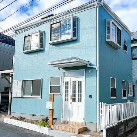 海まで徒歩数分。無垢材と白が調和した湘南らしいリゾートハウスで、コンパクトながらも生活しやすい戸建住宅です。
